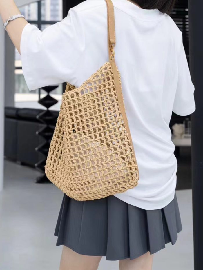 首页 Accessories 2024 New Versatile One Shoulder Beach Vacation Bag Woven Straw Commuter Tote Bag Large Capacity Bag