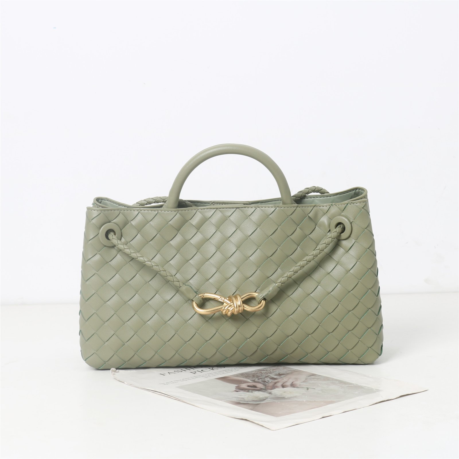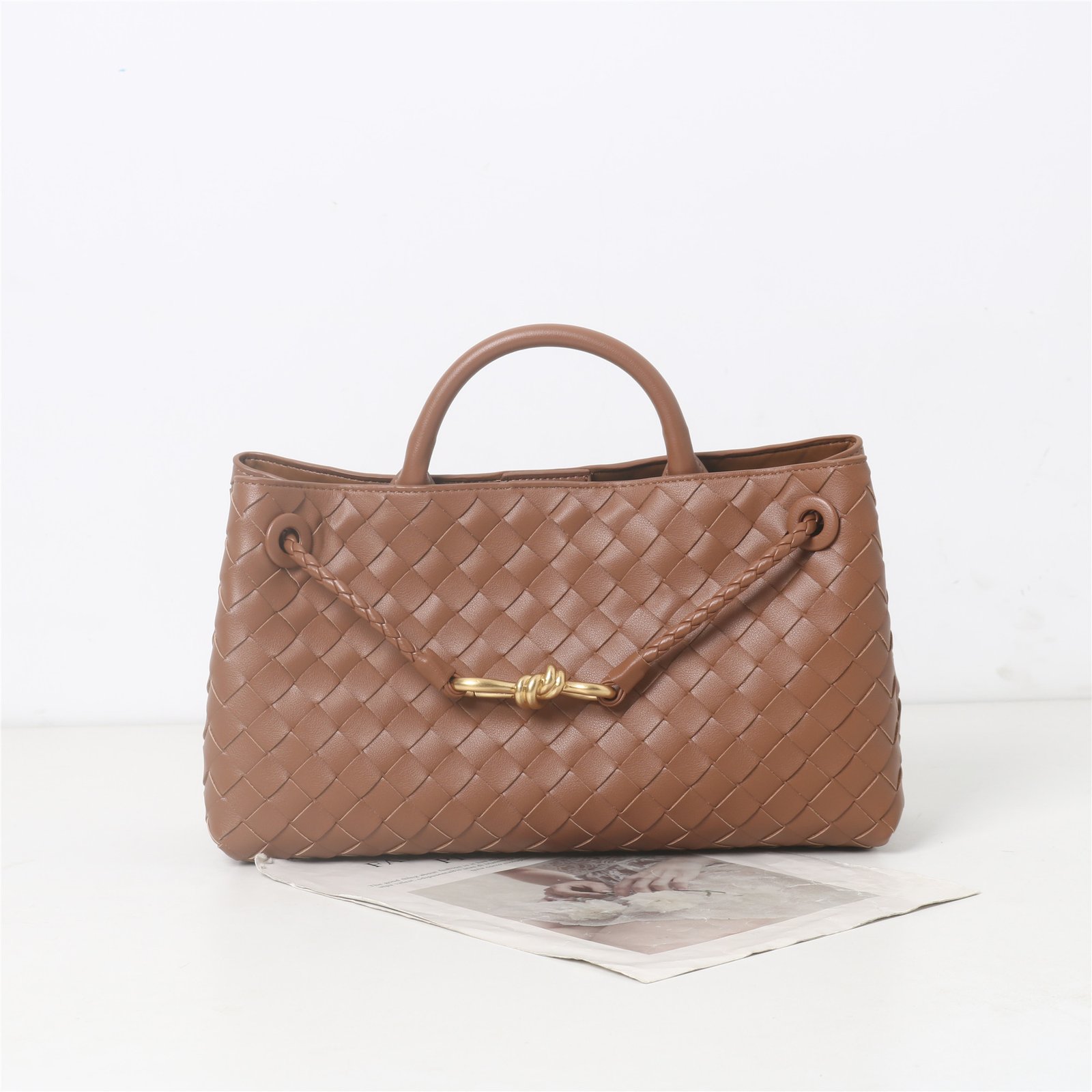 2024年春季新款牛皮包金属绳扣手提编织包通勤单肩斜挎手提包女