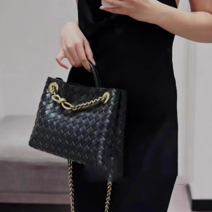 牛皮包包2024年春夏新款金属绳扣手提编织包通勤单肩斜挎手提包女