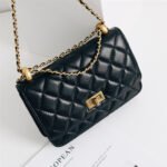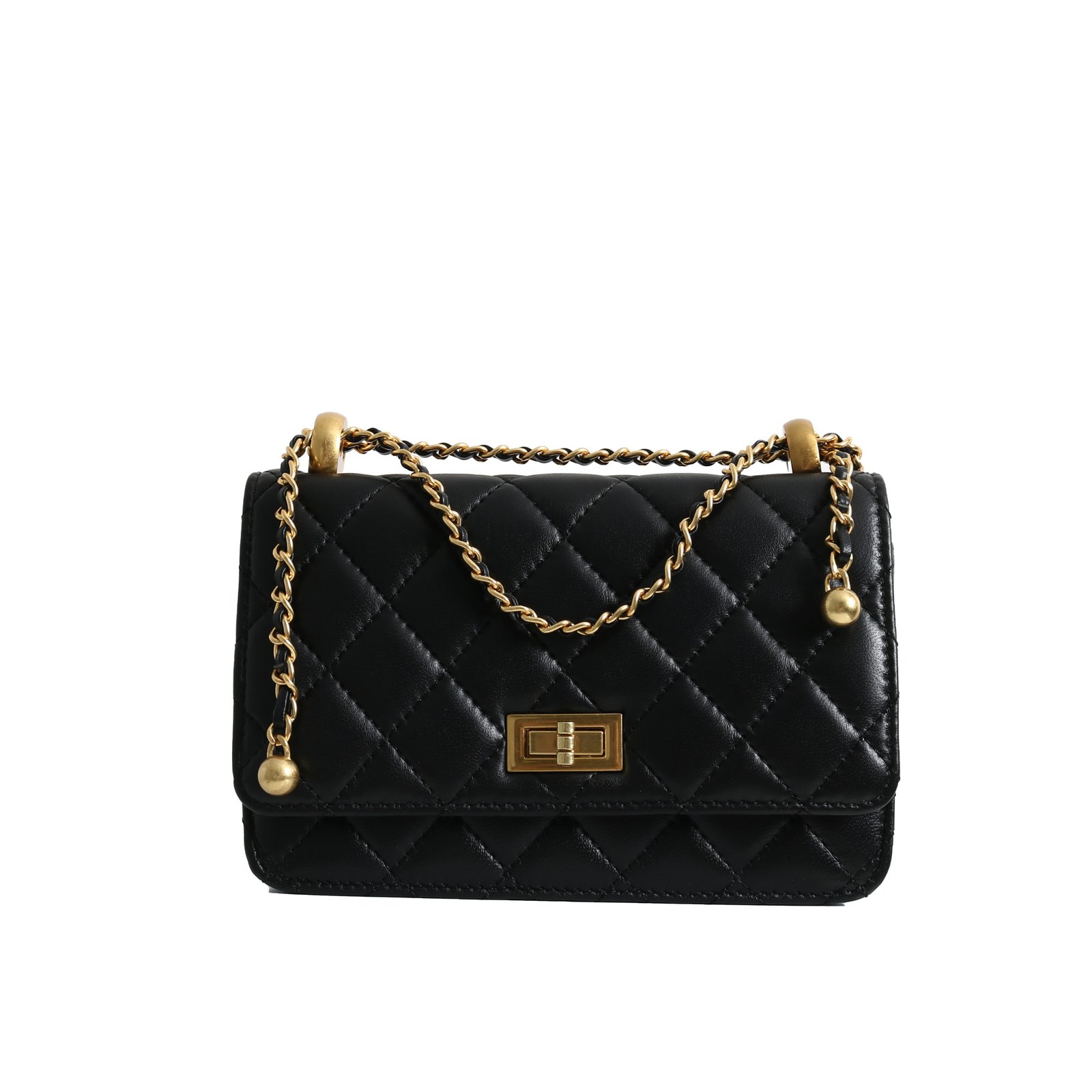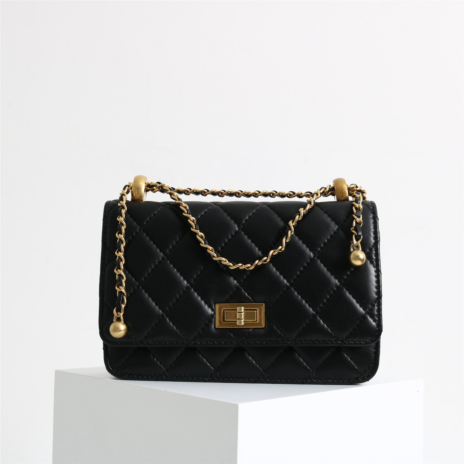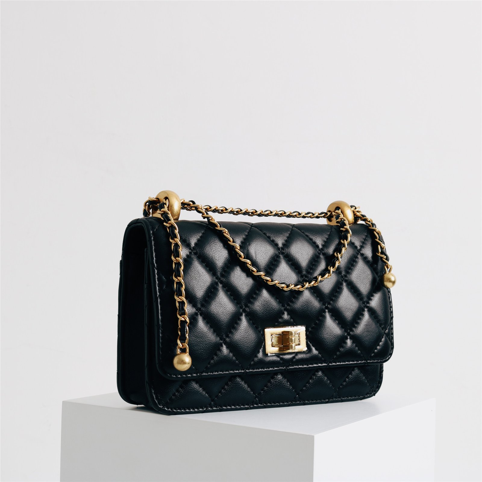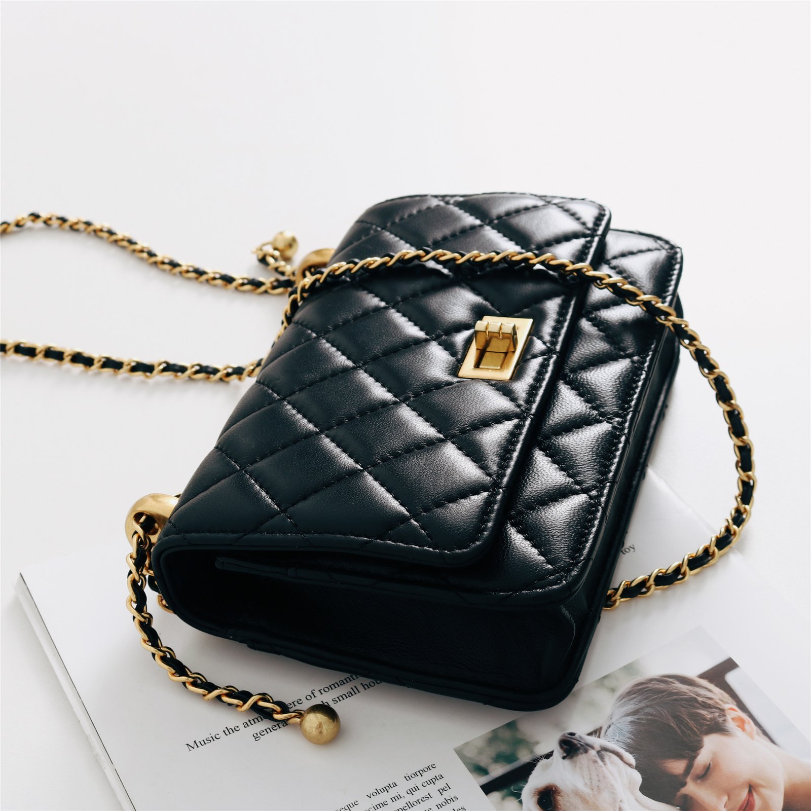 拱桥菱格包2024年春季新款羊皮小香风单肩斜挎包小金球小方包女包