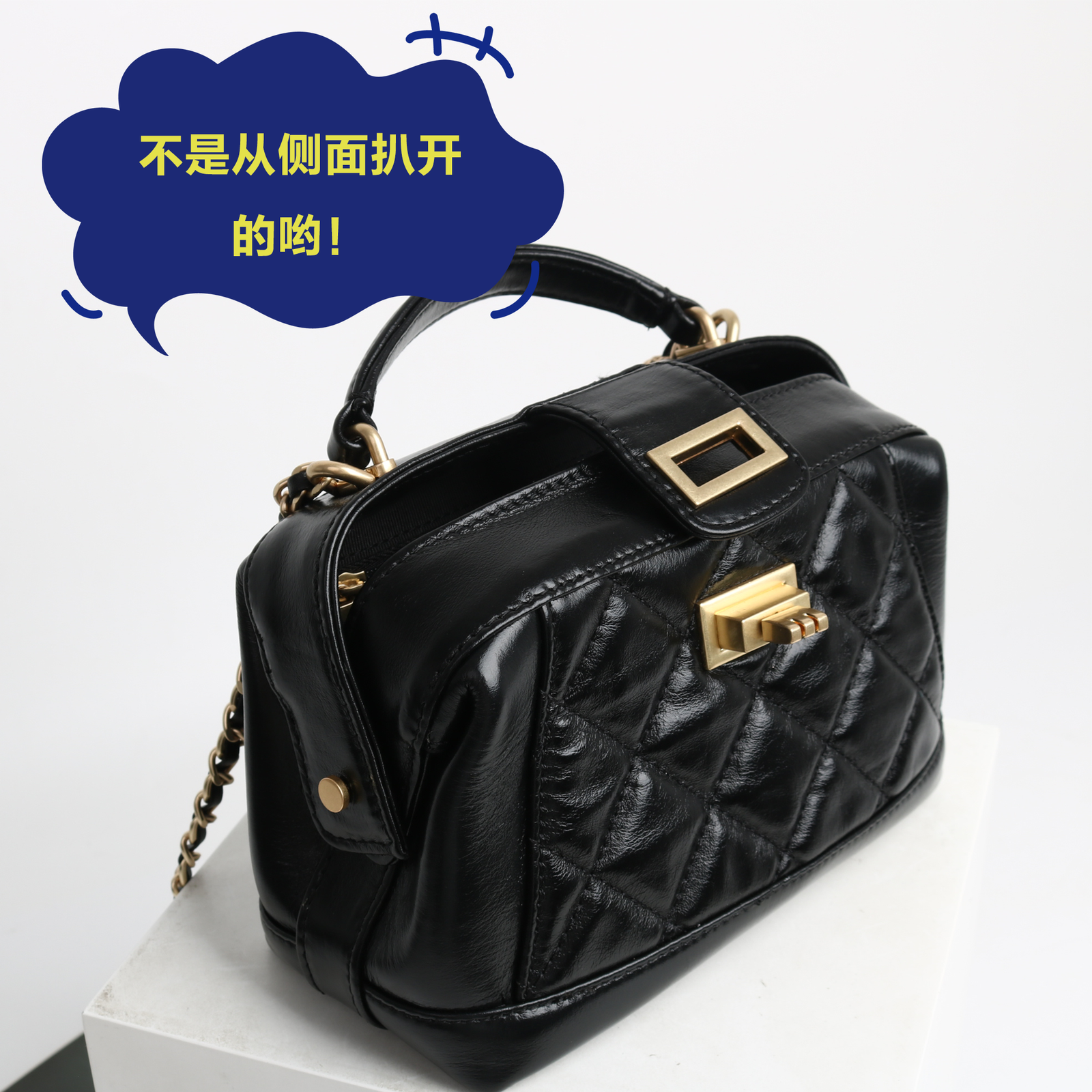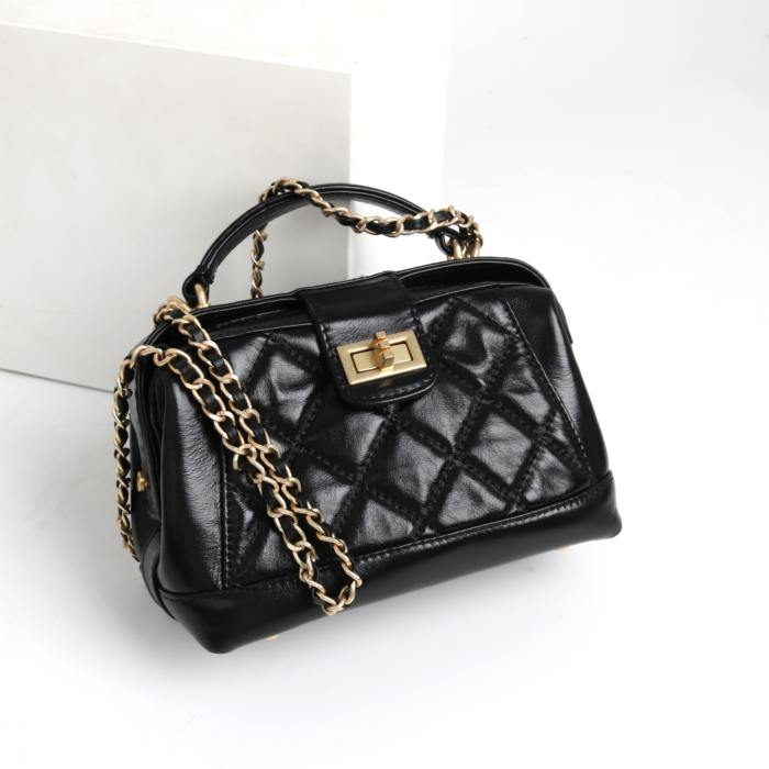 牛皮法式小众菱格链条包包女时尚手提包通勤单肩斜挎小包