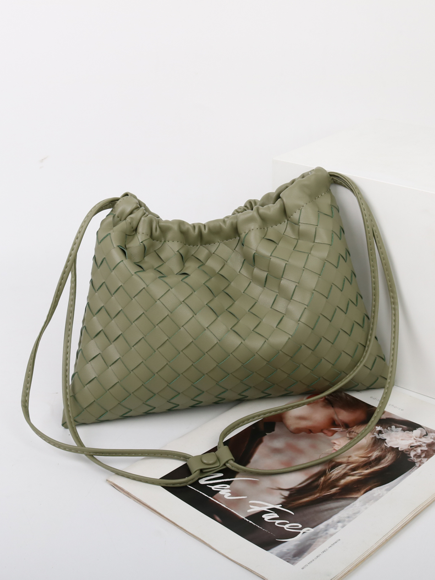 2024 New Metal Rope Buckle Leather Braided Bag Parachute Bag Shuqi Same Style Handheld Vegetable Basket Large Capacity