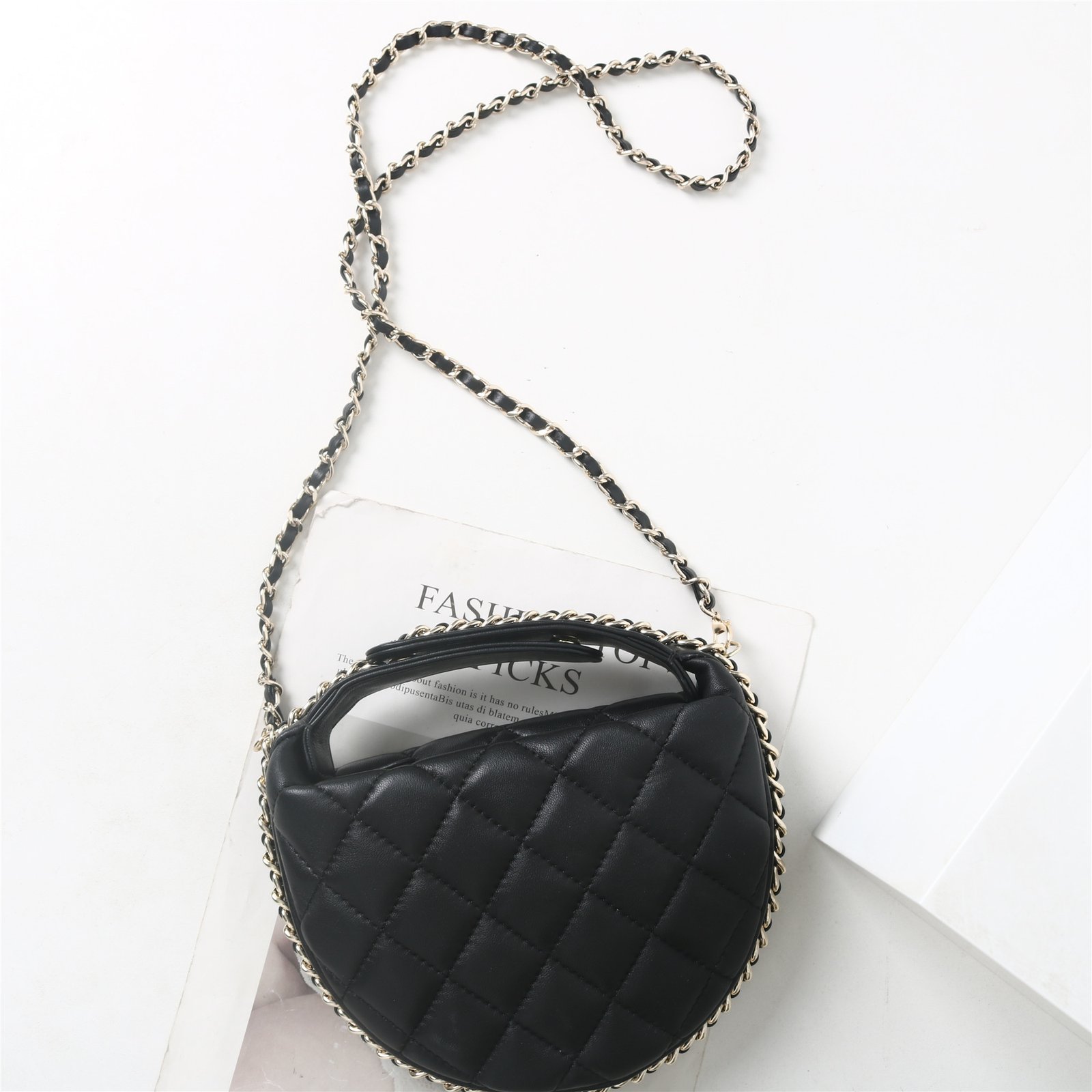 Lingge Sheepskin Bag 2024 Spring/Summer New Collection, Small Fragrant Style, High Grade, Chain Half Round Crossbody Handbag for Women