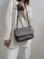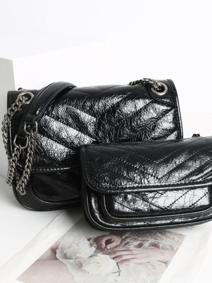 Oil wax head layer cowhide 2024 new retro large capacity chain shoulder crossbody niki messenger bag women’s bag