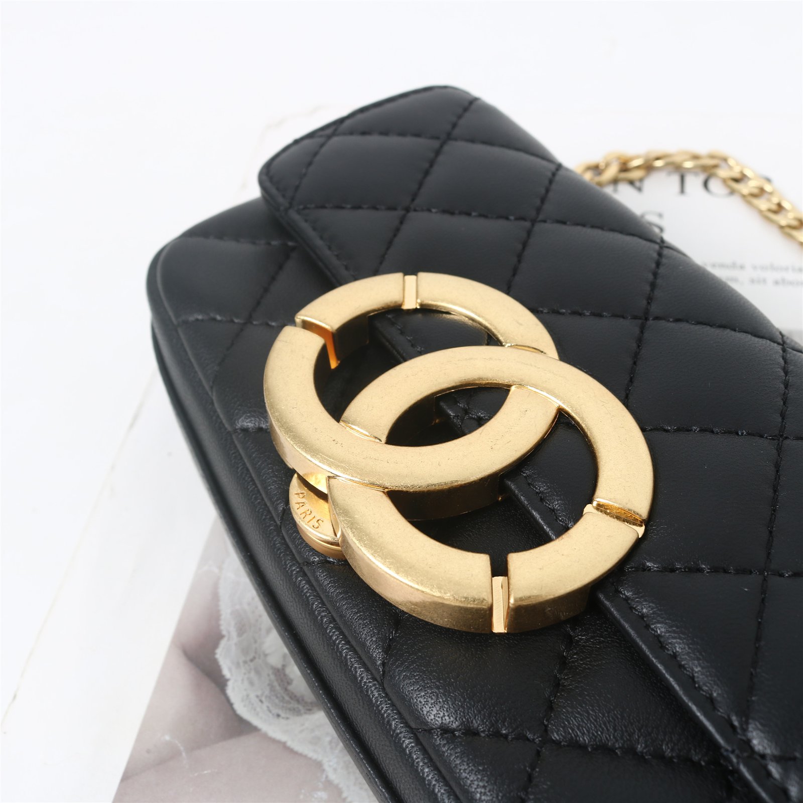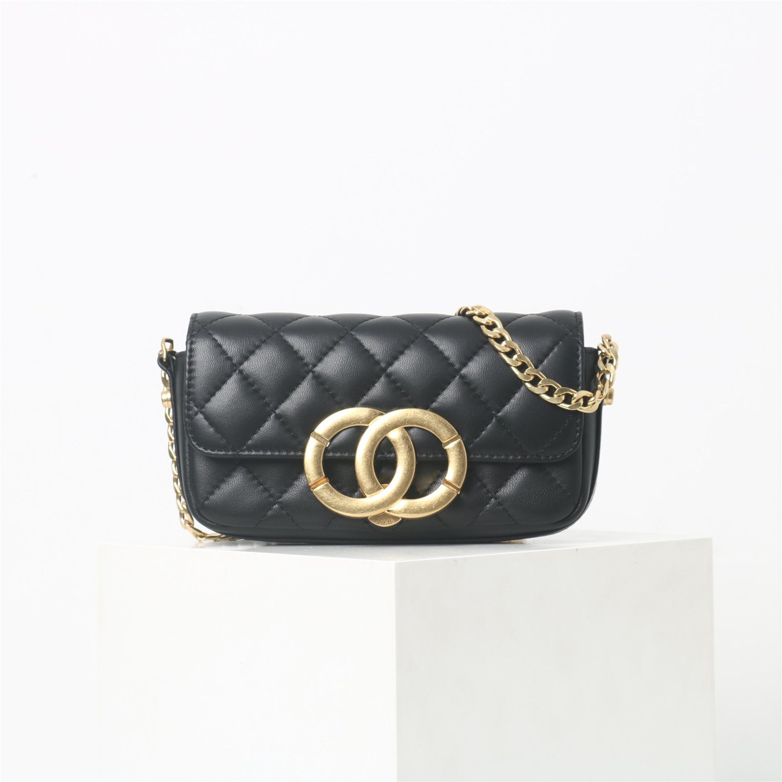 羊皮小香风2024年春夏新款复古菱格手机包单肩斜挎腋下小方包女