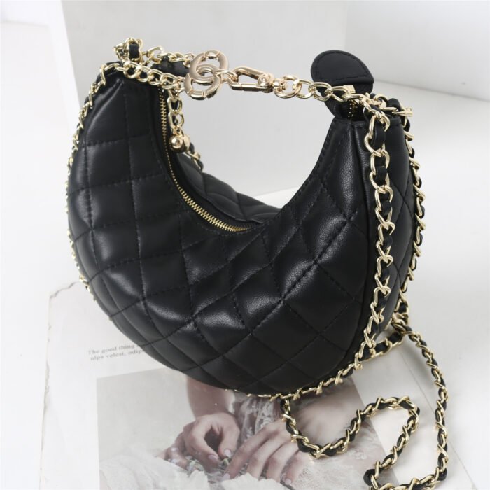 Xiaoxiangfeng Sheepskin Moon Bag 2024 Spring/Summer New Style Diamond Grid Chain Luxury Single Shoulder Cross Shoulder Crescent Bag for Women